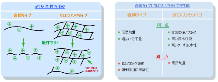 3.クロスリンクタイプ鎖が網目状に絡まる構造です。添加量を増やすと、非常に効果的な排水性能と耐せん断性を発揮します。